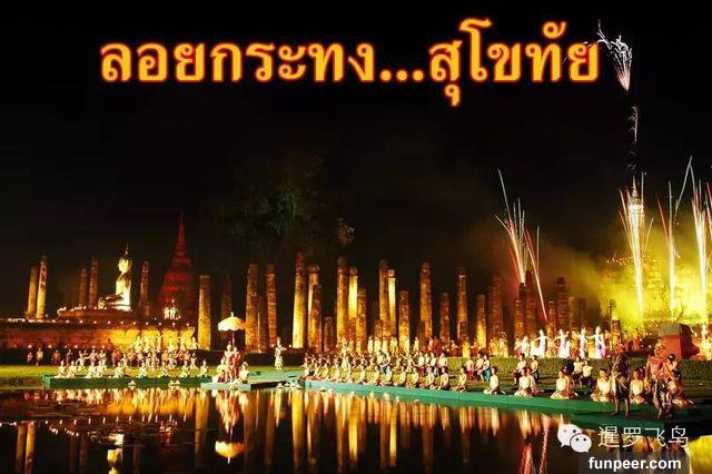 將心愿藉由水燈向上蒼祈福,是泰國的傳統習俗祈福+慶典 為未來許願泰國水燈節最重要的舉辦地,是在擁有700年歷史的古城素可泰,據說這裡也是發源地,歷史遺跡公園的水燈節活動是泰國規模最大的節慶之一,現場會搭配華麗的聲光秀,重現素可泰王朝的光輝歷史。