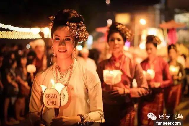 當地老百姓會在水燈節盛裝祈福,活動中陸續將上千隻水燈放入濱河(PingRiver)上漂浮,場面非常壯觀!河岸會擺放10個特製的精美絕倫皇家水燈,供遊人們觀賞和拍照留念。