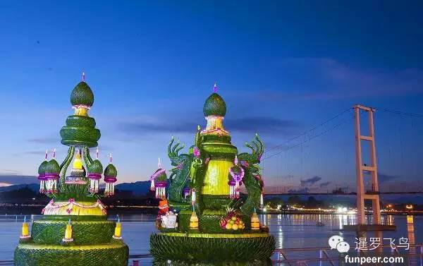 在湄公河畔的許多酒店、碼頭和大橋下,也都擠滿了人群,同樣舉辦著水燈節歌舞盛會。因此處處飄揚著歌聲,漂浮著花香,一片歌舞昇平的歡樂景象。