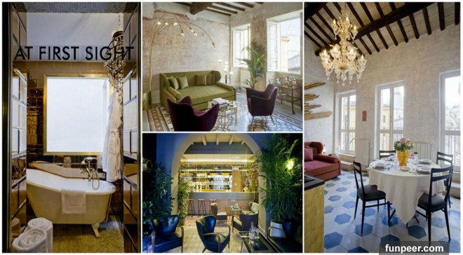 G-Rough座落在納沃納廣場(Piazza Navona)附近,由16世紀的townhouse(二、三層樓的連棟式建築)改建而成,號稱羅馬第一家兼具奢華質感與當代潮流美學的旅店。這棟只有10間房的設計旅店,由已故的旅館業者Emanuele Garosci(義大利第一間由Philip Stark設計的旅店PalazzinaG,就在他旗下)和專門蒐藏20世紀設計作品的收藏家、同時也是羅馬知名企業家Gabriele Salini聯手打造。