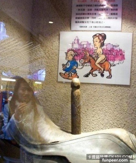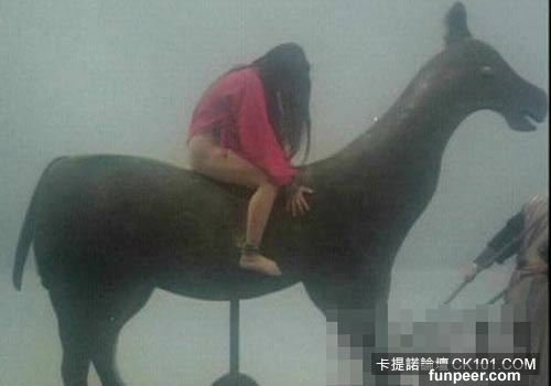 半赤裸下身綁坐木驢上釘尖,插入女人下身,遊街示眾,極其殘忍。